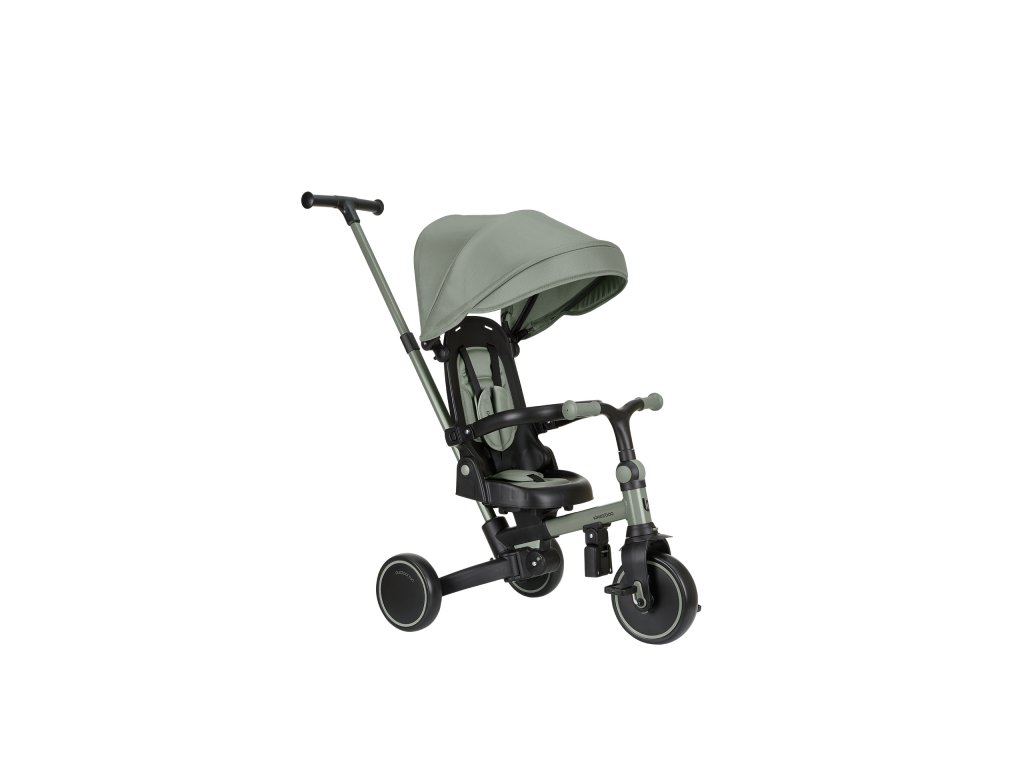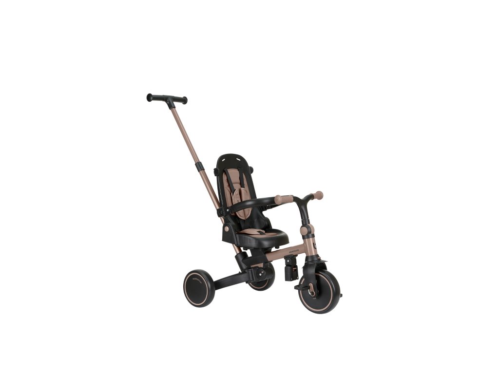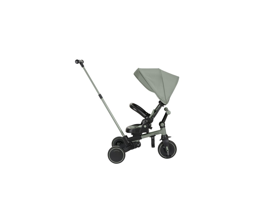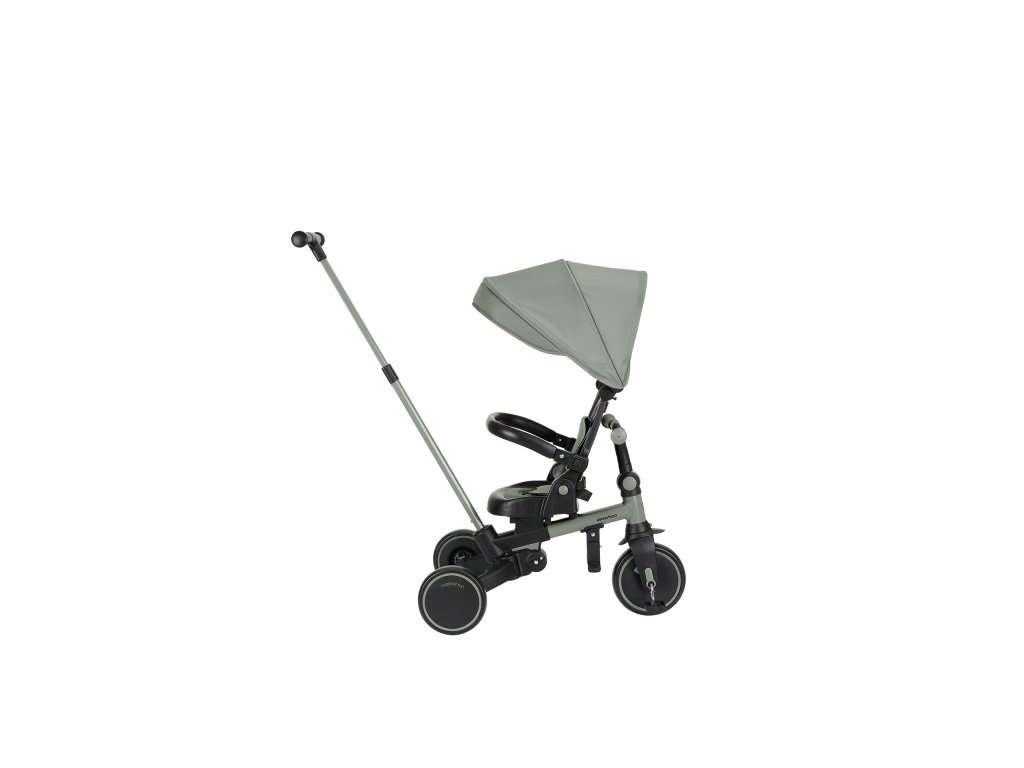 Trojkolka ponúka niekoľko režimov. Keď je dieťa pripravené, stačí odobrať vodiacu tyč a odblokovať pedále na prednom kolese, čím vznikne samostatná šliapacia trojkolka.