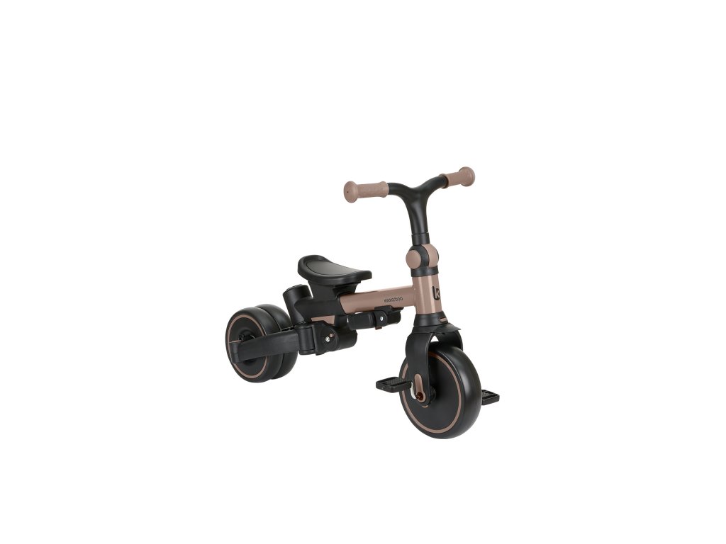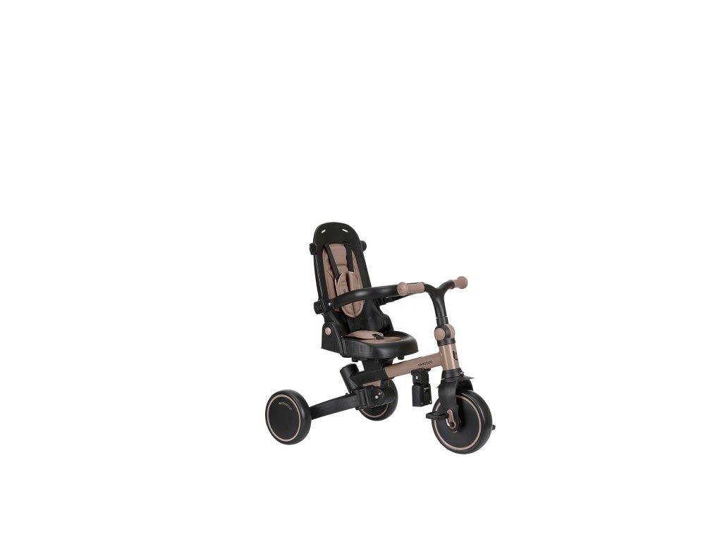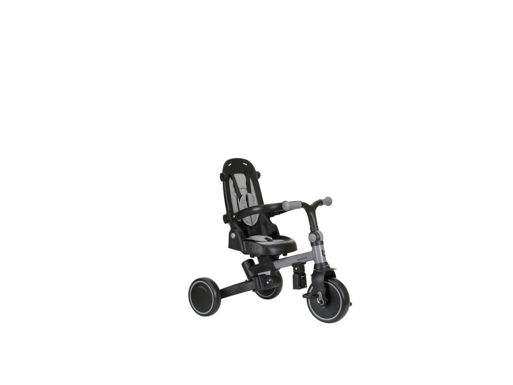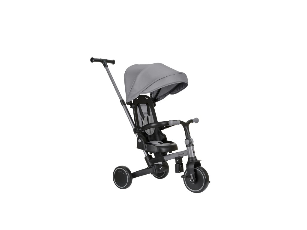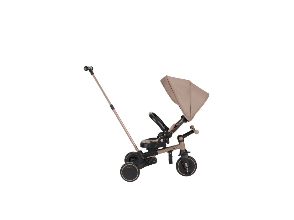 Trojkolka ponúka niekoľko režimov. Keď je dieťa pripravené, stačí odobrať vodiacu tyč a odblokovať pedále na prednom kolese, čím vznikne samostatná šliapacia trojkolka.