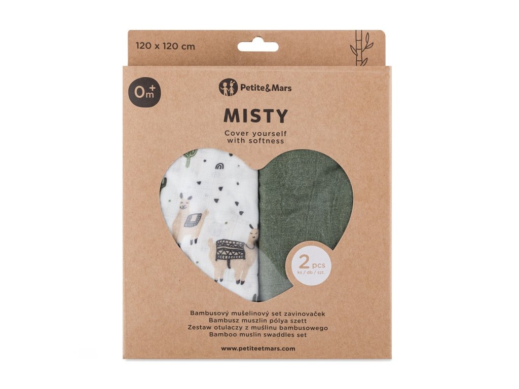 Zahaľte svoje dieťatko do maximálneho pohodlia s multifunkčnými zavinovačkami Petite&Mars Misty. Tento set dvoch kusov v štýlovom dizajne Llama Vibes je vyrobený z bambusového mušelínu, ktorý je známy svojou mimoriadnou hebkosťou a vzdušnosťou. Ide o nepostrádateľného pomocníka pre každodennú starostlivosť, ktorý je bezpečný aj pre tú najcitlivejšiu detskú pokožku.
