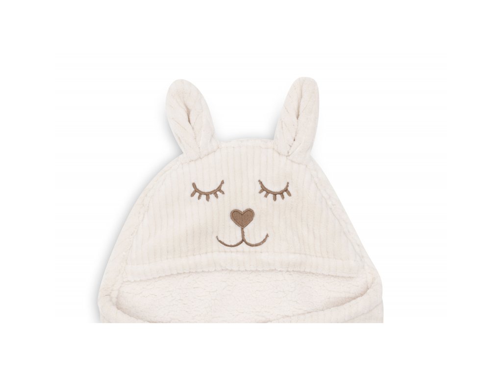- Ochranná kapucňa: Integrovaná kapucňa s ušami králička udrží hlavičku dieťaťa v teple aj v chladnejšom prostredí.