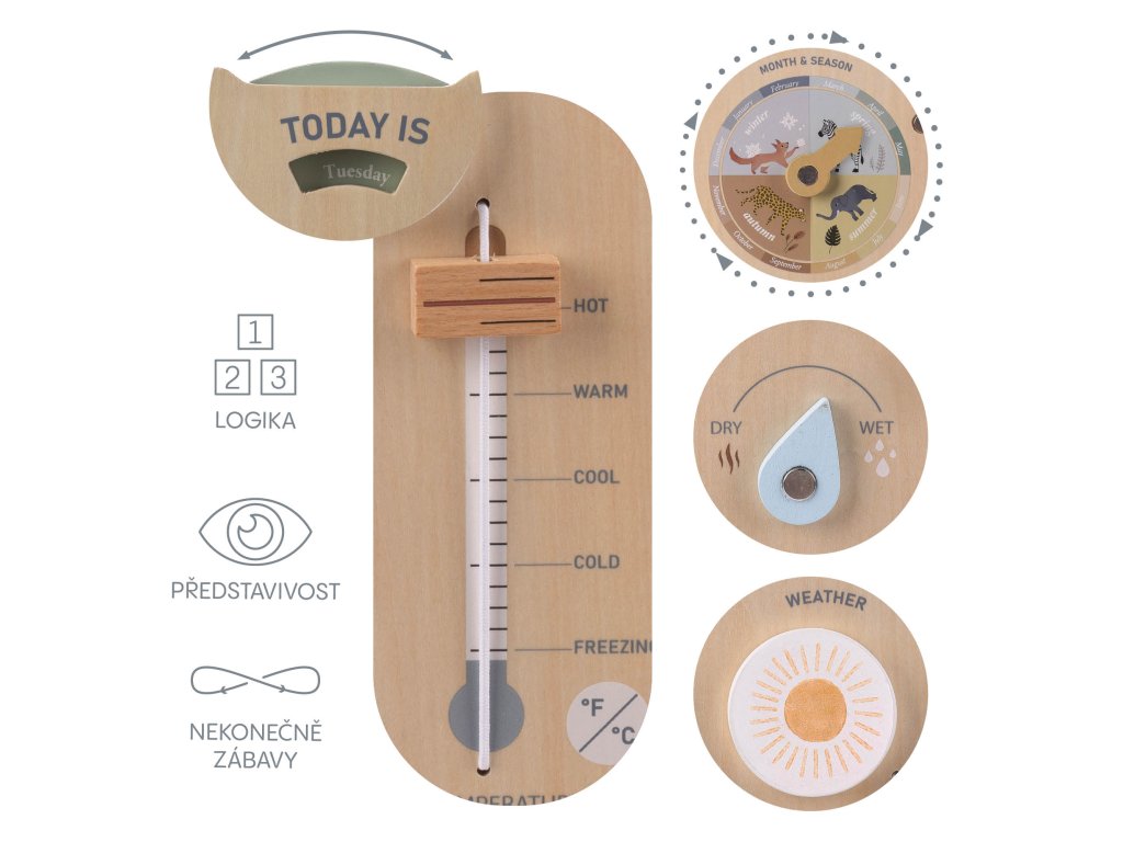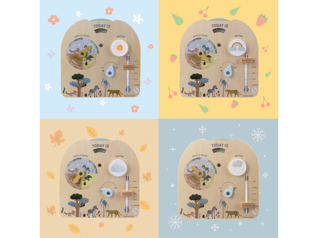 - Edukatívna hračka: Edukatívna hračka pre deti na spoznávanie sveta počasia, dní, ročných období a teplôt.
