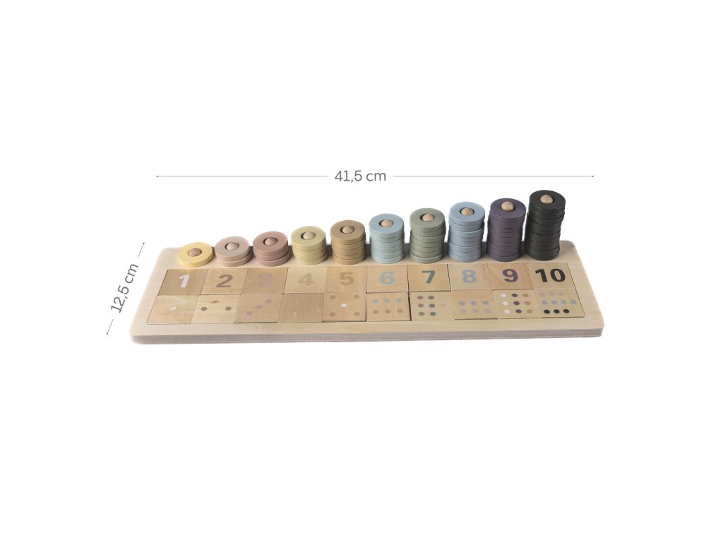 - 10 drevených doštičiek s bodkami (zodpovedajúce množstvá)