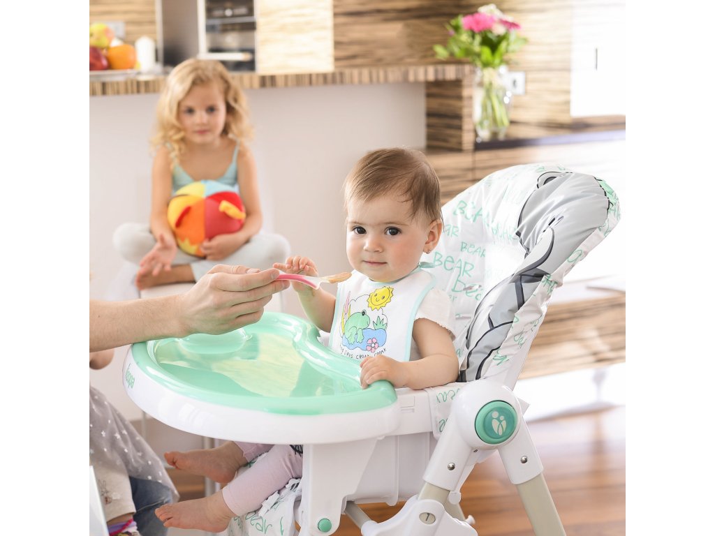 • Židlička bez pultíku sa dá prisunúť k veľkému jedálenskému stolu
