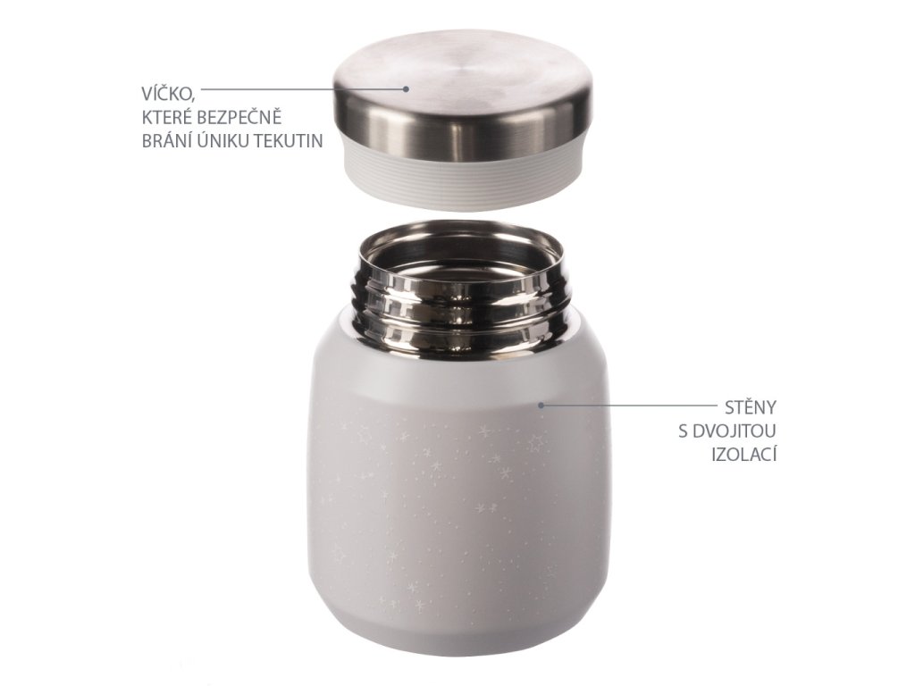 - Tesné viečko: Zaisťuje, že termoska nevyteká.